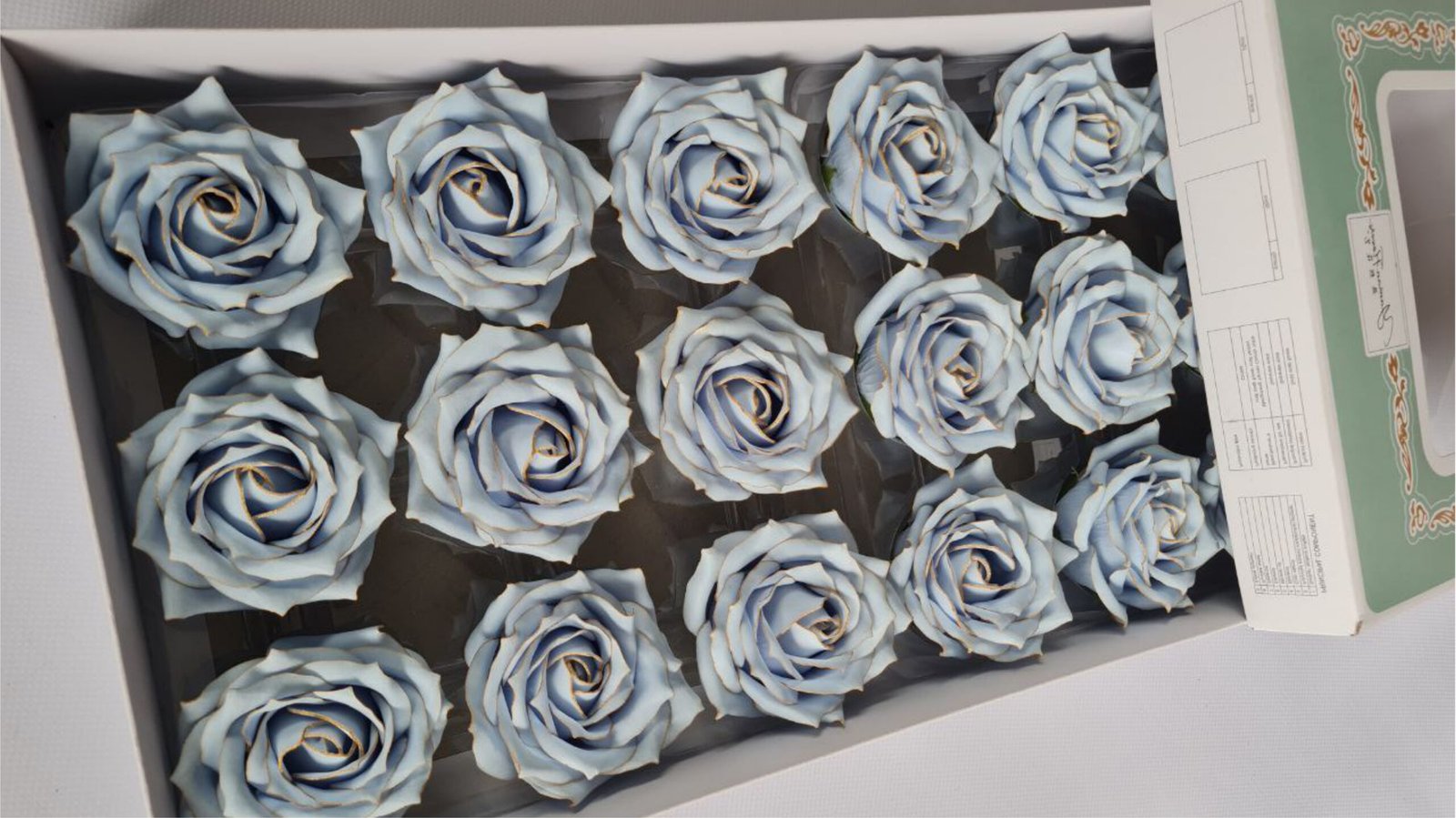Будьте першим, хто залишив відгук на “Блакитна кучерява мильна троянда (великий бутон) з золотим кантом”
