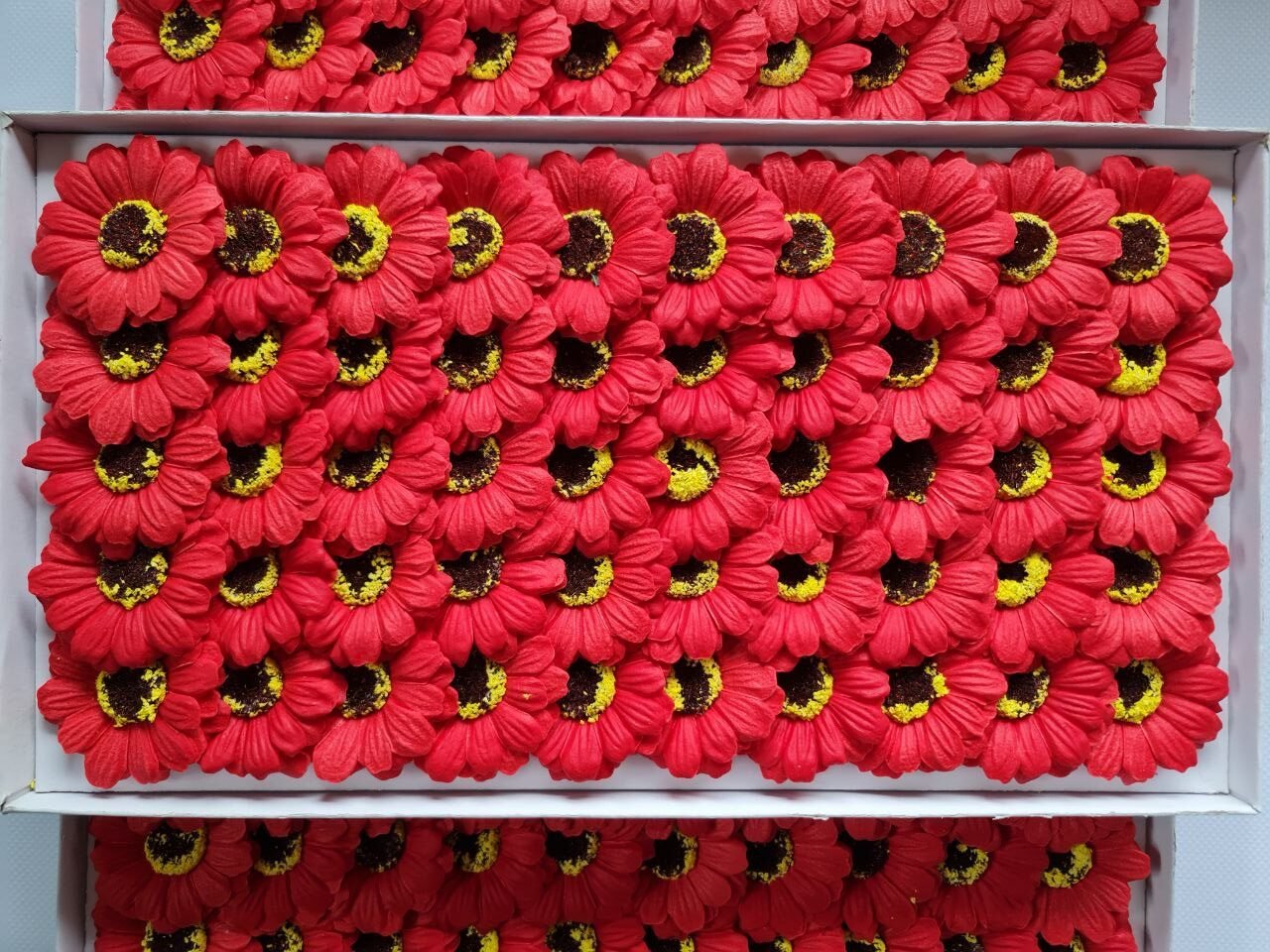 Червона маленька гербера з мила для створення розкішних мильних букетів
